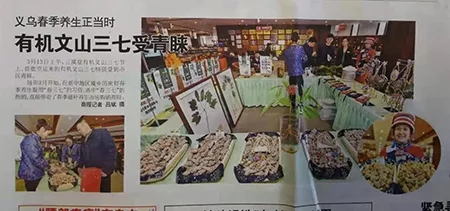 ? ? ? ?2019年3月13日上午,浙江義烏市三溪堂有機(jī)三七養(yǎng)生文化節(jié)上,首批空運(yùn)來的苗鄉(xiāng)有機(jī)三七受到了當(dāng)?shù)厥忻竦母叨仍u價。
